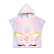 3D Printing Unicorn Cartoon Pattern Hooded Soft Bath Towel