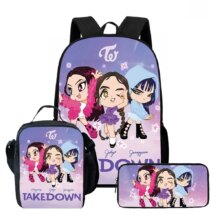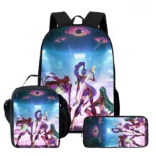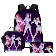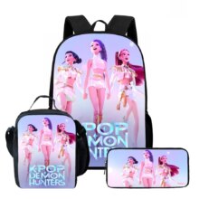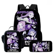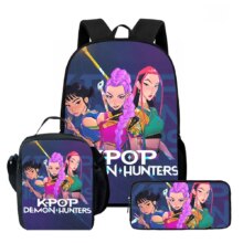 3Pcs/Set Kawaii Anime KPop Demon Hunters Nylon School Bag: This 3Pcs/Set Kawaii Anime KPop Demon Hunters Nylon School Bag is perfect for students who love cute aesthetic style with a touch of anime flair. Made from durable nylon, the set includes a spacious backpack (11×30×40cm), a handy lunch bag (8×19×25cm), and a compact pencil case (4×22×9cm). Lightweight and functional, it keeps school essentials organized while showcasing adorable KPop-inspired demon hunter graphics—ideal for daily school use or gifting.