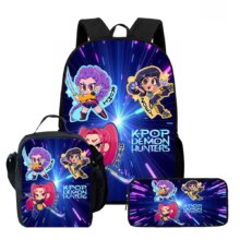 3Pcs/Set Kawaii Anime KPop Demon Hunters Nylon School Bag