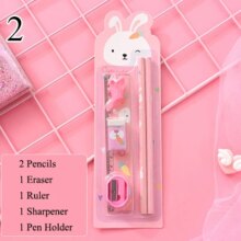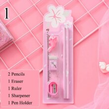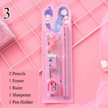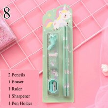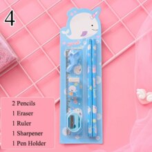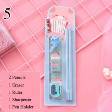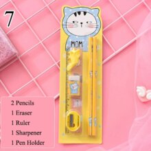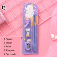 6Pcs/Set Kawaii Stationery Set Pencils With Eraser Ruler Sharpener