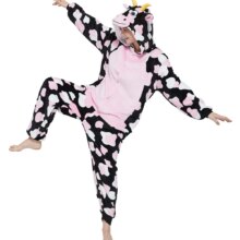 Anime Cow Kigurumi Onesies Flannel Pajamas Set