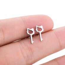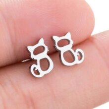 Cat Cartoon Design Stainless Steel Silver Color Earrings For Women