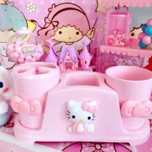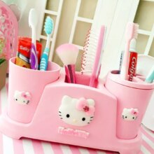 Cat Cartoon Hello Kitty Couple Toothbrush Cup Tumblers Brush Mouthwash Shaped Plastic In Bathroom Accessories Set