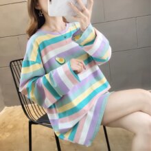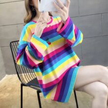 Harajuku Kawaii Rainbow Striped Oversized Long Sleeve T-Shirt