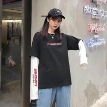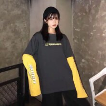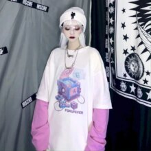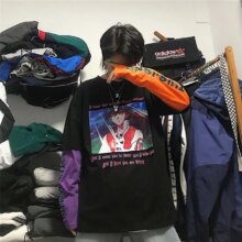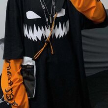 Harajuku Pumpkin Print Patchwork Casual Long Sleeve T-Shirt