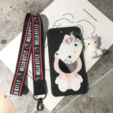 Hello Kitty Cat Cartoon Mirror Matte Soft Phone Cases With Strap