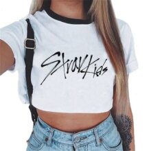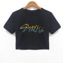 Idol Group Stray Kids Print Crop Tops For Women