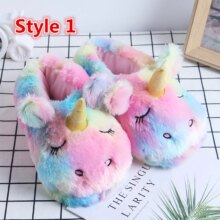 Rainbow Unicorn Warm Cotton Plush Indoor Shoes For Women