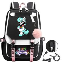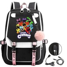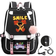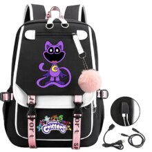 Kawaii Anime Smiling Critters Catnap USB Charge School Bag: Stay cute and connected with the Kawaii Cartoon Smiling Critters Catnap USB Charge School Bag! Made from durable canvas, this adorable backpack features a charming catnap design and a built-in USB charging port, making it perfect for school, travel, or everyday adventures.