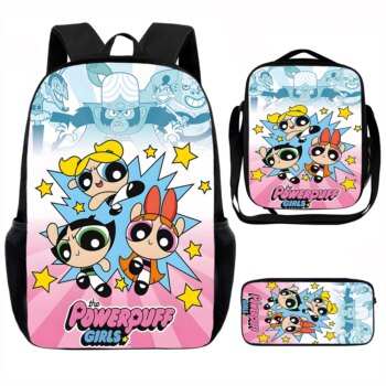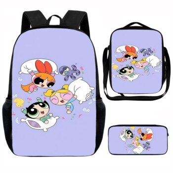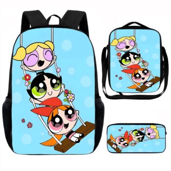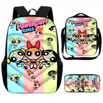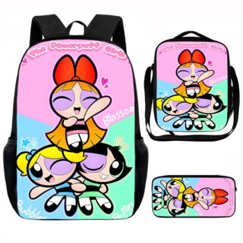 3Pcs The Powerpuff Girls Printed Kawaii Schoolbag