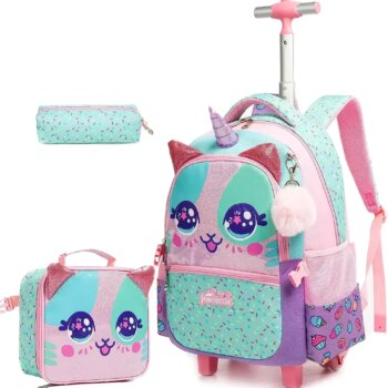 3Pcs Rolling Kawaii Backpack – Unicorn