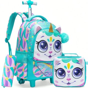 3Pcs Unicorn Printed Rolling Kawaii Backpack