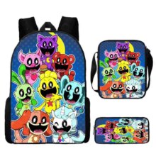 3 Pcs Set of Smiling Critters Backpack ,Shoulder Bags ,Pencil Bags ,Cartoon School Bags for Boys Girls,Amine Games Book Bags