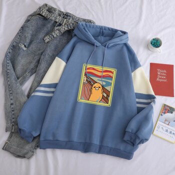 Kawaii Gudetama Lazy Egg Print Fleece Patchwork Casual Hoodie