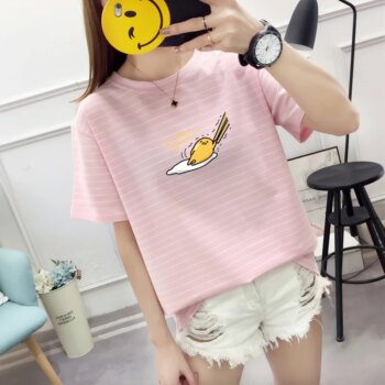 Kawaii Cartoon Gudetama Print Short Sleeve Casual T-Shirt