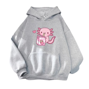 Kawaii Anime Axolotl Loves Strawberry Milk Doodle Hoodie