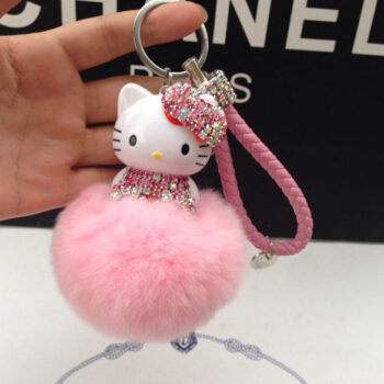 Hello Kitty Pom Pom Cartoon Keychain With Fur Ball & Bell