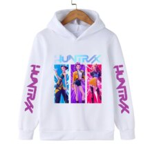 Kawaii KPop Demon Hunters Printed Polyester Hoodie: The Kawaii KPop Demon Hunters Printed Polyester Hoodie blends cute anime vibes with bold K-pop energy for a standout streetwear look. Designed for everyday comfort and style, this hoodie is made from smooth Polyester and offers a relaxed fit suitable for growing kids and teens. Perfect for casual outings or fandom wear, it comes in a versatile size range of 100 to 160, making it easy to find the right fit for expressive, playful fashion lovers.