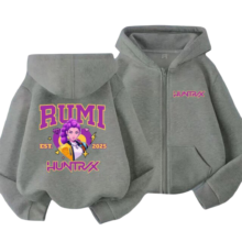 Kawaii KPop Demon Hunters Rumi Zipper Hoodie: The Kawaii KPop Demon Hunters Rumi Zipper Hoodie brings a cozy blend of anime charm and stylish street fashion. Made from soft Polyester and available in sizes S-XXXL, this hoodie features a cute Rumi-inspired design that perfectly matches any KPop or anime lover’s wardrobe. Its comfortable fit, vibrant detailing, and lightweight feel make it ideal for daily wear, casual outings, or adding a touch of kawaii flair to your favorite outfits.