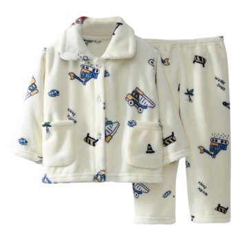 Kawaii JCB Printed Coral Fleece Pajama Set