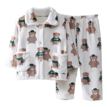 Kawaii Bear Printed Coral Fleece Pajama Set