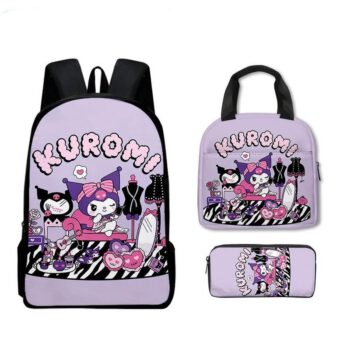 Kawaii Cartoon Kuromi Bag And Lunch Bag With Pencil Case