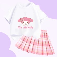 Kawaii Sanrio Cartoon My Melody T-Shirt And Skirt: Elevate your child’s wardrobe with the adorable Kawaii Sanrio Cartoon My Melody T-Shirt and Skirt set! Made from a blend of high-quality cotton and polyester fiber, this outfit promises both comfort and durability. Available in sizes ranging from 9 to 160 cm, it’s perfect for kids of various ages. The charming My Melody design adds a playful touch, making it an excellent choice for casual outings, playdates, or special occasions. This cute outfit ensures your little one looks stylish and feels great all day long.