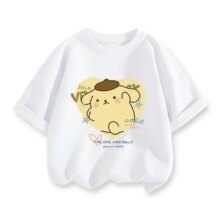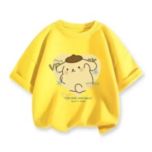 Kawaii Sanrio Cartoon Pompompurin Printed T-Shirt: Add a dose of cuteness to your wardrobe with the Kawaii Sanrio Cartoon Pompompurin Printed T-Shirt! Featuring an adorable Pompompurin design, this t-shirt is perfect for fans of the beloved Sanrio character. Made from soft and breathable cotton, it ensures comfort all day long. Available in sizes from 90 to 160 cm, this t-shirt is great for kids and teens who love all things kawaii. Its playful and casual style makes it ideal for everyday wear or as a special gift for Sanrio lovers.
