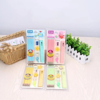 6Pcs/Set Kawaii Stationery Set Pencils With Eraser Ruler Sharpener
