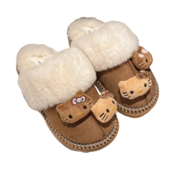 Kawaii Cartoon Hello Kitty Brown Plush Slipper