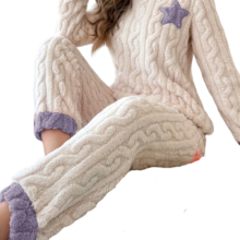 Kawaii Star Printed Coral Fleece Pajama Set