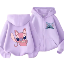 Kawaii Stitch And Angel Anime Zipper Sweatshirt: Add a splash of anime-inspired cuteness to your child’s wardrobe with the Kawaii Stitch and Angel Anime Zipper Sweatshirt! Featuring the beloved Stitch and Angel in a playful anime-style design, this sweatshirt is perfect for young fans of adorable and expressive fashion. Made from soft and durable polyester, it ensures cozy comfort all day long. With an easy front zipper and sizes from 110 to 160 cm, it’s ideal for school, outings, or casual layering.