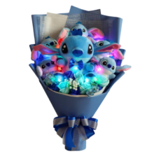 Kawaii Stitch Plush Toy With Rose Bouquet: Enjoy the charm of Stitch with the Kawaii Stitch Plush Toy With Rose Bouquet! Crafted from soft plush material, this delightful Stitch plush features him holding a lovely rose bouquet, making it a perfect gift or addition to any Stitch fan’s collection.