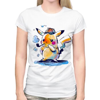 Watercolor Detective Pikachu Cartoon Casual Short Sleeve T-Shirts