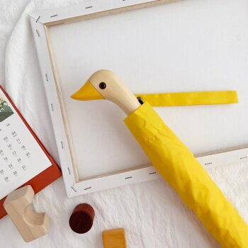 Duck Head Wood Automatic Handle Windproof Umbrella