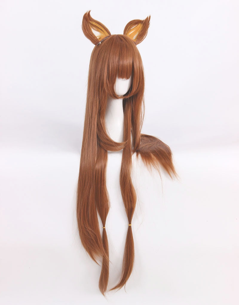 The Rising of the Shield Hero Raphtalia Rafutaria Long Brown Heat Resistant Synthetic Hair Wig + Ears Hairpins