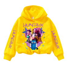 KPop Demon Hunters Kawaii Casual Print Hoodie: The KPop Demon Hunters Kawaii Casual Print Hoodie blends cute pop vibes with edgy anime flair for everyday wear. Crafted in smooth Polyester for lasting comfort, it’s perfect for fans who love playful street style. Designed for a relaxed fit, this hoodie is available in Size 100 to 160 for growing trendsetters.