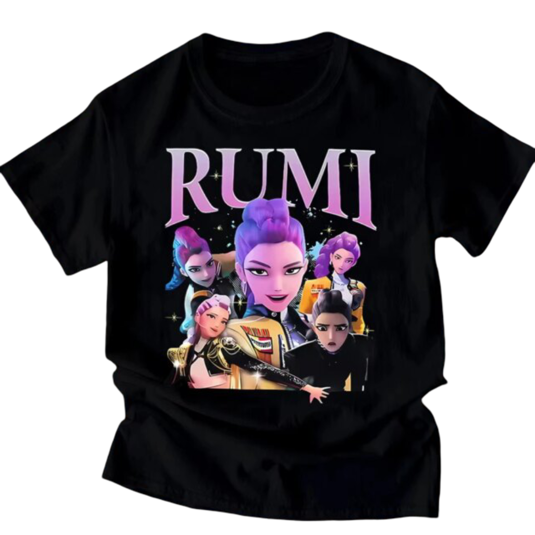 KPop Demon Hunters Kawaii Rumi Round Neck T-Shirt: The KPop Demon Hunters Kawaii Rumi Round Neck T-Shirt brings adorable anime charm and comfy streetwear style together. Made from soft Polyester and designed in sizes S-XXXL, this tee is perfect for fans who love cute character fashion with a touch of Demon Hunter flair. Its breathable fabric and clean round-neck design make it ideal for everyday wear, conventions, or pairing with casual outfits for a playful K-style look.