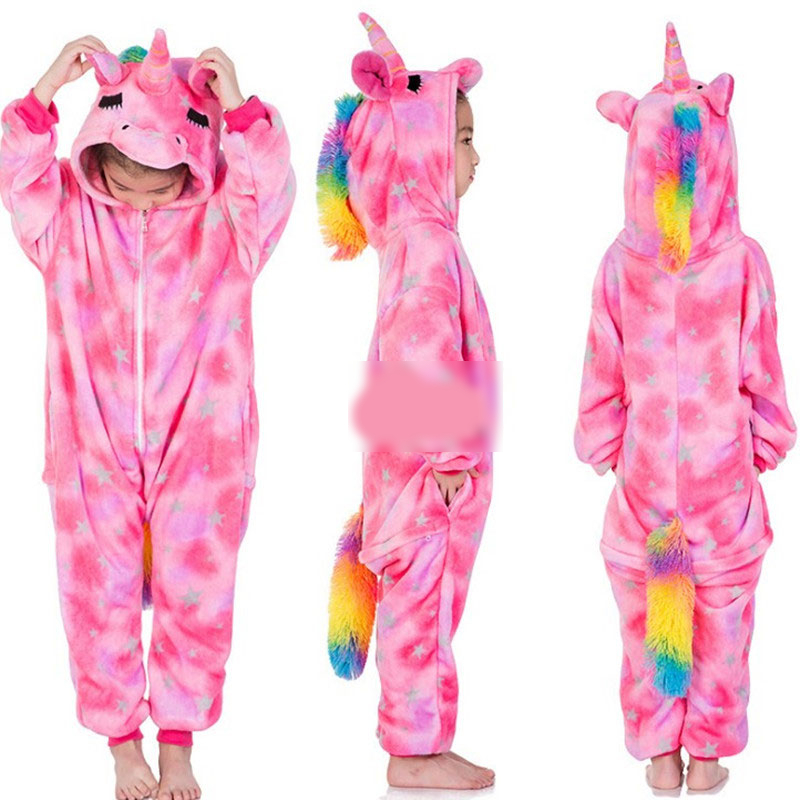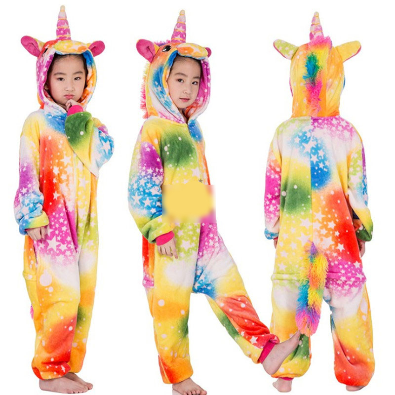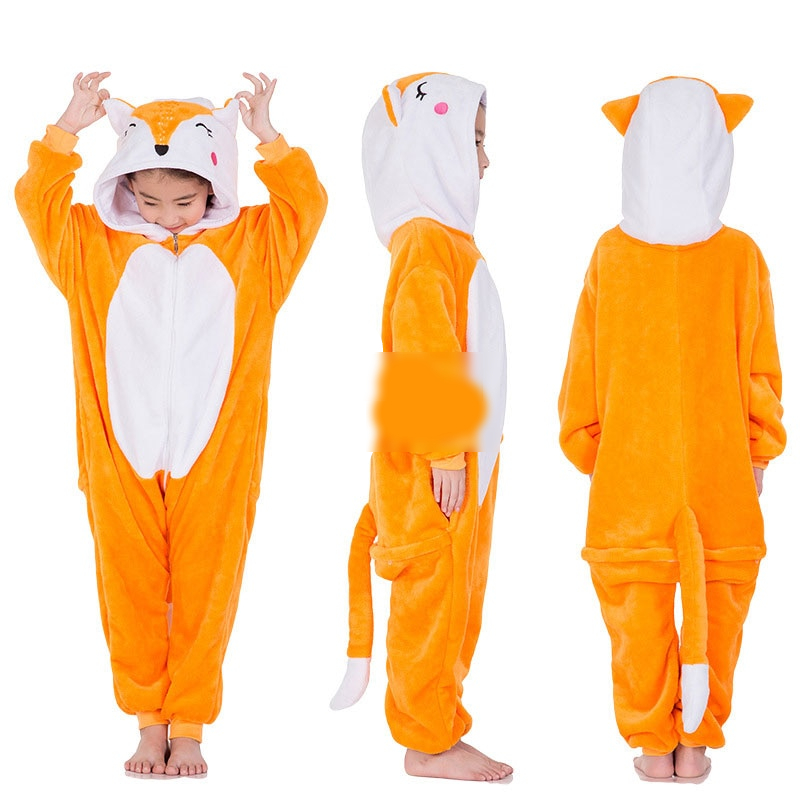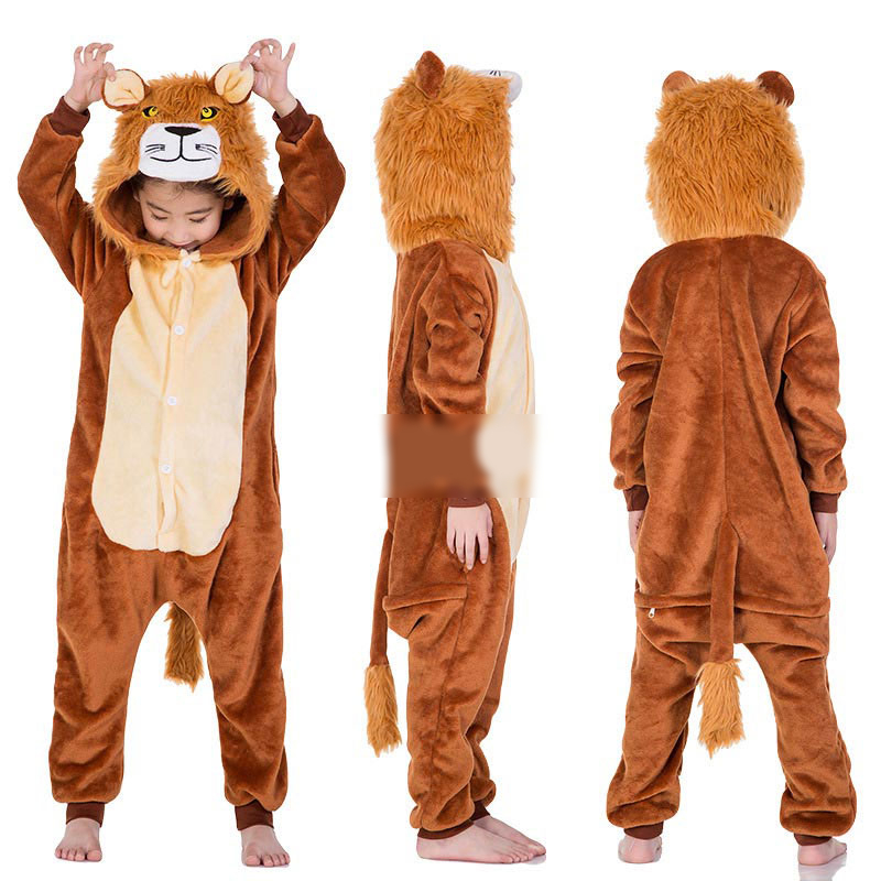 Kids Animal Onesies Lion Deer Fox Kigurumis Flannel Warm Soft Sleep Suit Boy Girl Festival Christmas Party Funny Cartoon Pajamas
