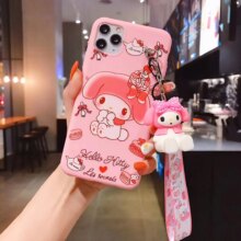 My Melody Cartoon Doll Makeup Mirror Phone Case With Lanyard