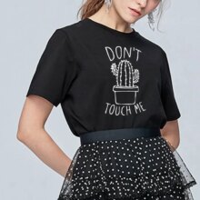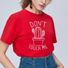 Kawaii Cactus Design O-Neck Short Sleeve Style Casual T-Shirt