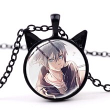 SIAN Noragami Aragoto Black Cat Ear Necklace Yukine Yato Hiyori Figure Pendant Glass Cabochon Necklaces Jewelry Gifts For Kids