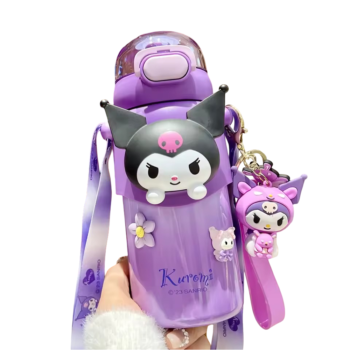 Kawaii Sanrio Kuromi Water Bottle With Keychain