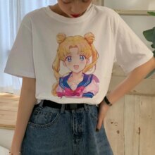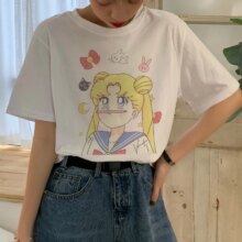 Sailor Moon Cartoon Harajuku Graphic Style Casual Short Sleeve T-Shirt