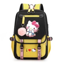 Sanrio Kawaii Hello Kitty Yellow Color USB Charging Backpack: Carry your essentials in style with this adorable Sanrio Kawaii Hello Kitty Yellow Color USB Charging Backpack. Perfect for fans of Hello Kitty and those who appreciate cute and functional accessories, this backpack combines practicality with charm.