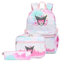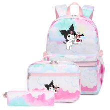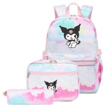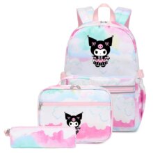 3Pcs Sanrio Kawaii Kuromi Backpack With Lunch Bag And Pencil Case: Carry your essentials in style with the Sanrio Kawaii Kuromi Backpack set! This adorable trio includes a spacious backpack, a convenient lunch bag, and a matching pencil case, all featuring the charming Kuromi design. Made from durable nylon, this set is perfect for school, travel, or everyday adventures.